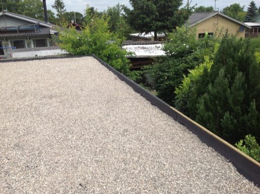 På svejsning af nyt tagpap afsluttet med perlesten